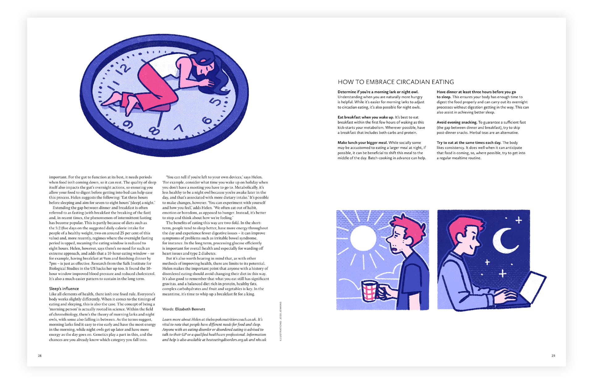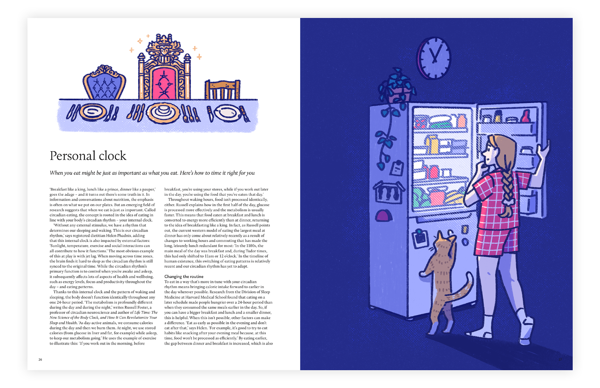 Illustrations responding to an article on circadian eating, from Breathe Magazine issue 59. This was self-initiated work and is not a paid commission from Breathe.